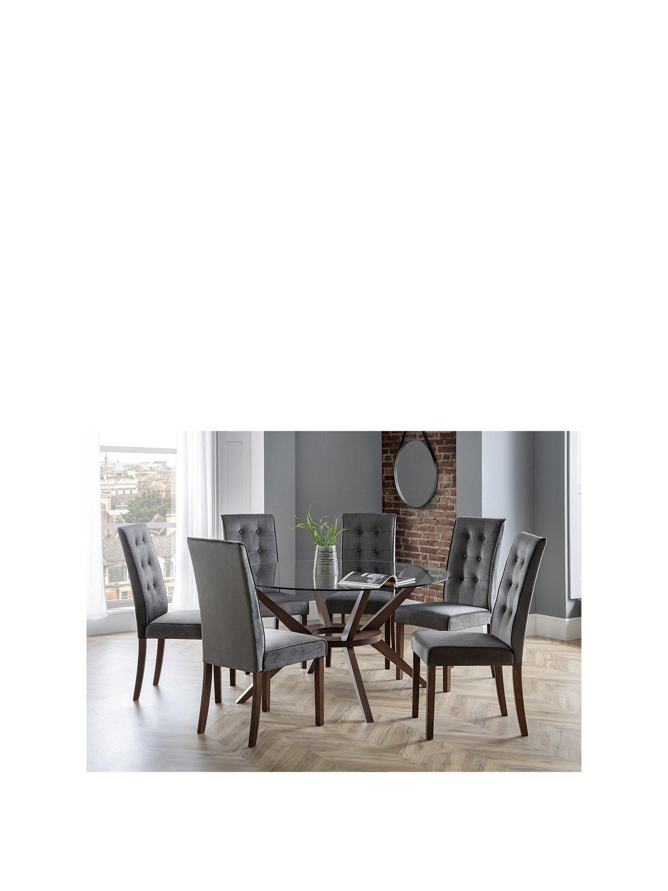At furniture in fashion, we provide you with a stylish collection of glass dining table and 6 chairs to accommodate your guests and family. Mainstays 5 piece dining set 4 metal chair 1 round glass table living room. This dining set is designed with streamlined, flowing lines and a dark brown finish. The most popular shapes include rectangular, square, oval and round glass top dining table sets. East west furniture avon avbo7 seven piece extension dining table set.